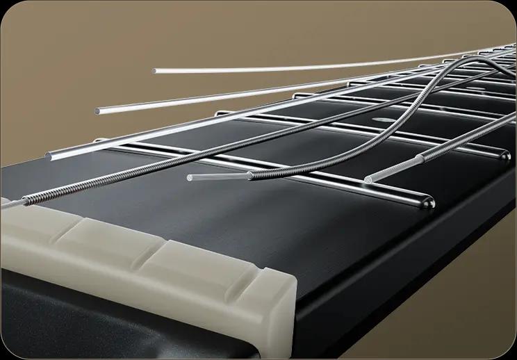 Equipped with rounded Medium frets and an