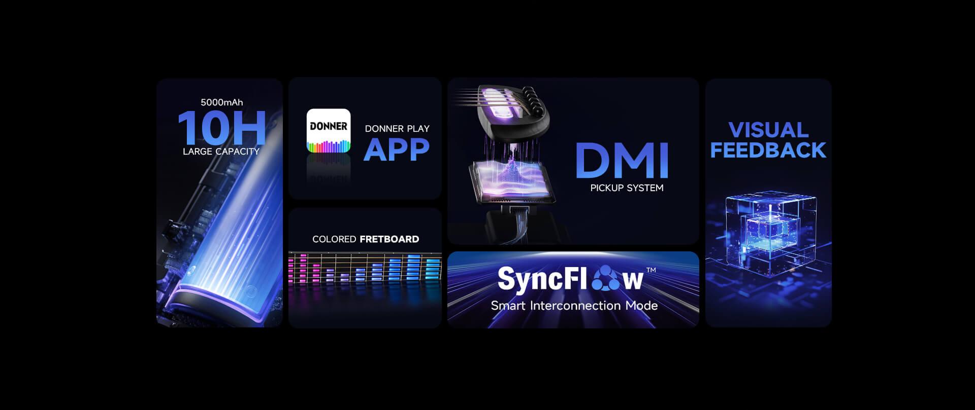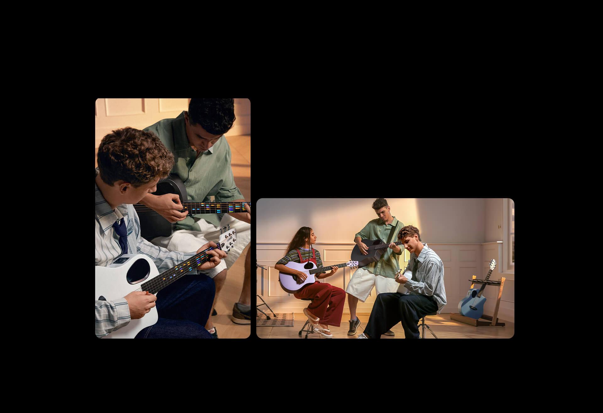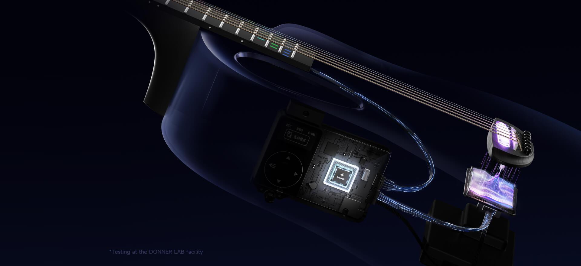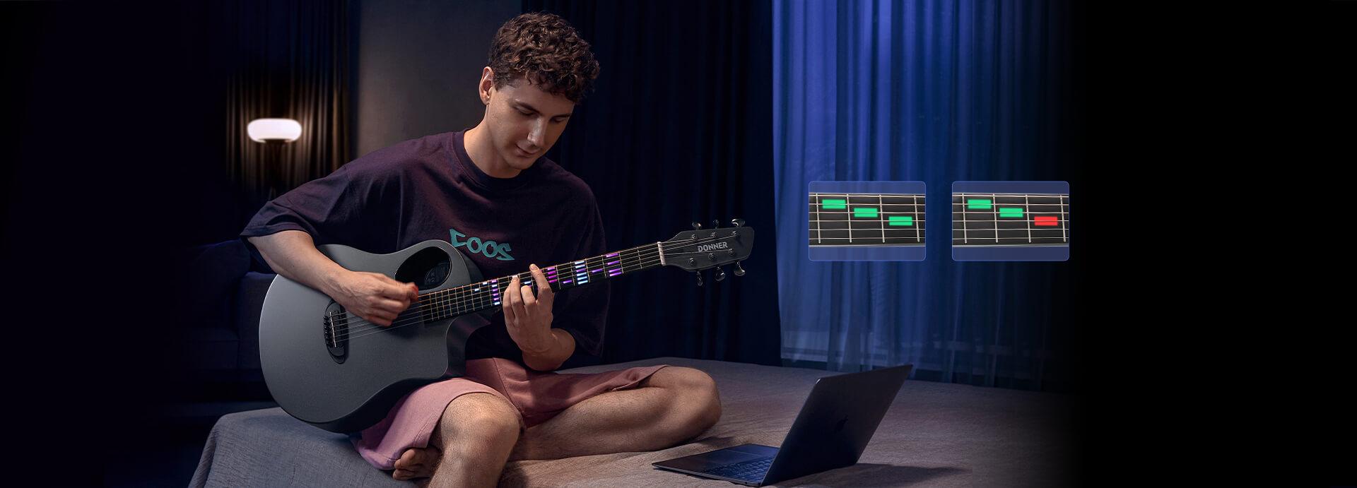 Accuracy up to 99.8%, latency ≤120ms, allows for faster and more accurate sound pickup, and the system quickly responds to determine if the playing is correct, displayed through fretboard colors as feedback to the player.